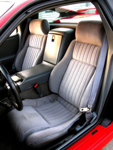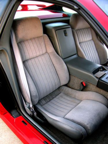 Red on Gray Cloth & Black Wheels 5-Speed 2.8L V6 37k (36,xxx) miles Options Include - Power Locks, Windows, and Mirrors Performance Sound Power Lumbar Seat Rare Owners Manual and Service Schedule Included Full Tune Up Last Fall Tires are brand new as of last fall Wheels look showroom new, no curb rash at all. A/C Blows cold Headlamps Operate Brakes (pads & rotors) were done last year Battery replaced last year Car fires right up runs smooth No Rust, garage kept, and adult owned. Some minor flaws that may be of concern to someone looking for a museum quality car - Dew wipes on windows are cracking from age Small crack in driver side corner of dash Some small cracks in the passenger side door panel Body has some knicks and flaws that one would expect for a car of this age that was driven 35,000 miles. If you have any other questions, I'm happy to talk over the phone or answer e-mails! This is the nicest low mile Fiero you'll come across that isn't the price of a new car. Buyer is responsible for pickup or shipping Thank You For Looking! |