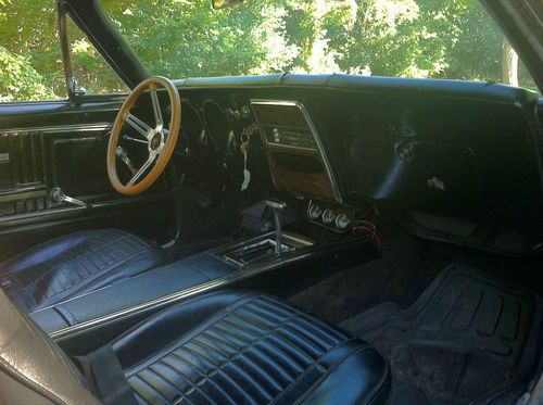 The interior is very good looking. The seats, center console, etc all look very nice driver quality. Someone had cut the dash for an aftermarket radio it appears. That radio isn't in the car. The wipers, heater, fuel guage and horn do not work. All the lights do work though. The trunk floor and d. side floor will need new metal eventually. There are temp, volt, and oil pressure gauges that have been installed. Included is a BRAND NEW headliner in the box!