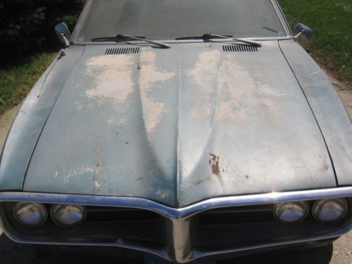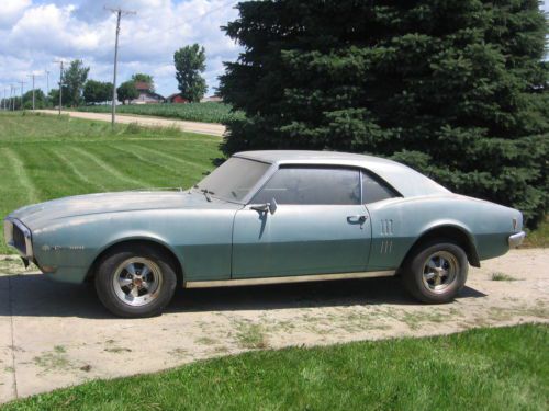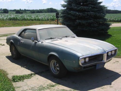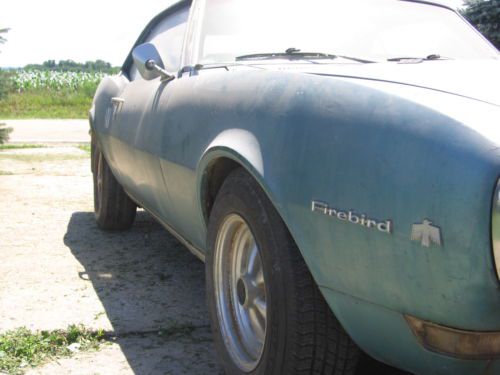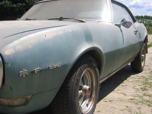 This is my dad's 68 firebird the he purchased in California and brought back to Illinois where it now sits in his garage. The car has a California title and it's California blue plates. Believed to be the original Pontiac 350 2bbl motor but I have not verified the numbers to be sure. The motor runs surprisingly well. It idles smooth and accelerates smooth but looks like the throttle cable sticks. The front seal on the tranny also looks it might be leaking from the car sitting so long. I changed the engine oil, gave it a new battery, added tranny fluid, started it and moved it in and out of the garage to take pictures. You can drive the car as-is if you do some service to the car. The two best things about the car are the color combo and that it is a rust free car.