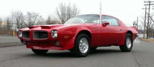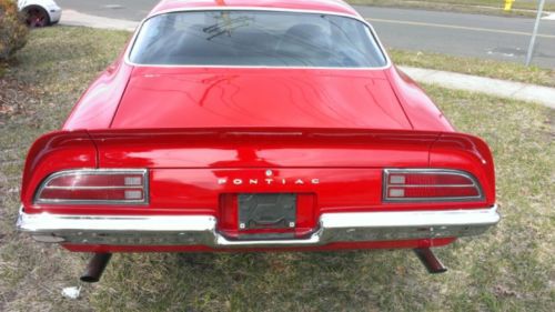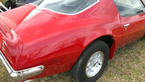 1972 Pontiac Firebird Formula 400 with 350 engine and 4 barrell carb. Automatic. Air Conditioning. Power Steering. Power Windows. New paint job - so good it looks wet! New tires with honeycomb wheels. Chrome is in excellent shape. Undercarriage & engine are as clean as the exterior. Floors are solid. Trunk is clean. No Rust. No Rot. No Bandaids. What you see is what you get! Car needs absolutely nothing! |