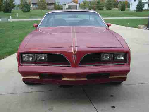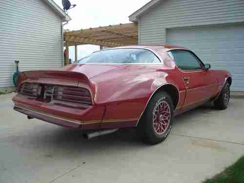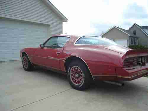 Your viewing a rare 1978 barn find Pontiac firebird Red Bird, the body and undercarriage are completely rust free on this 35 year old car, it is not perfect it does have some scratches and some dings but nothing major. The interior is in great shape except the plastic side panels have faded. The engine runs good, it could use a degreasing and a powerwash.it does leak oil from its original motor and gaskets. I was going to pull motor replace gaskets and clean and paint the engine and compartment. When i figured someone might want it just the way it is. i have put new brakes including calipers, pads and had rotors turned so it would be drivable. the steering is tight and trans shifts great. This is a very solid car and a great investment. Pontiac are not being made any more plus to have a rare bird like this. The value of this car will escalate faster due to the rareness.