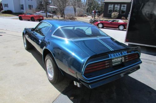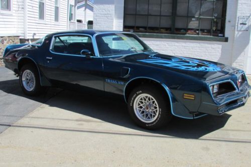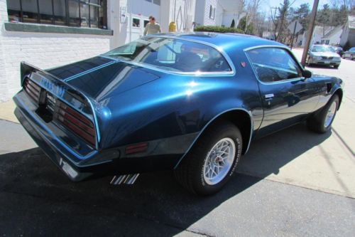 This 1978 Pontiac Trans Am has gone through an extreme make over over the past 2.5 years. Restored from the ground up by a professional classic car restoration shop here in New England. The car was completely disassembled to the bare shell, stripped down to the bare metal and refinished in Nocturne Blue metallic. New tri-tone graphics, stripes and the eagle on the hood. Mirror finish 2 stage base coat clear coat PPG paint system that has no flaws, straight body lines, proper alignment to all the sheet metal. Two new front fenders, orig. rust free doors, orig. rear quarters. Complete new tinted glass, new bright work and stainless trim, weather strip, window felts, door handles. New Sno flake factory alloy wheels mounted on P225/70R 15" BF Goodrich TA radials. High grade quality exterior finish. Countless hours of priming, blocking and wet sanding went into the prep work resulting in an extremely straight body that looks like glass. Under the hood is an Olds 403 performance motor built by Modello in CA. This 403 Pro Street engine puts over 440hp and 450lbs of torque, 403 crank, 403 rods, high compression pistons, Edelbrock alum heads, full roller rockers, alum intake. This turn key motor comes with a 5 yr. unlimited mileage warranty from the time of installation. The transmission is a beefed up TH350 2 stage, Modello Launcher torque converter with a 2800 stall converter. Everything is top notch, high performance with a complete list of specs. The rear is a 10 bolt Posi upgraded to 28 spline axles, 2.73 gear ratio. HD 1" rear sway bar, new KYB shocks all the way around. Complete new font end components, such as ball joints, upper/lower A-arm bushings,, inner tie rod ends, sway bar link, all 4 brake rotors, new calipers, brake lines and hoses, complete new suspension, multi leaf rear spring, front coil springs, brake hardware, E-brake system. Complete new exhaust system, 2.5 w/crossover pipe, dual Magna Flow mufflers with new chrome exhaust splitters. Sub frame connectors were also added to strengthen the chassis due to the extreme horsepower this car puts out. Only 204 miles since the car was restored. Check out the fresh interior! Black buckets, new carpet seat covers, door panels, headliner, complete new tilt steering, Kenwood am/fm CD player with two 6x9 in the rear. New rear pkg. tray, new seat belts. All the gauges have been restored, including the clock. New brushed alum applique, rear window defroster, factory AC that works ice cold, retro fitted to R-134A system. Basically, this Trans Am is new through out and ready to drive! Nothing left to do on this "Bad Ass" TA. Over $70k invested...like we say "buy the car done!" Call Roland for more info, tell him you saw it on ebay! 603-361-3693 More photos available: |