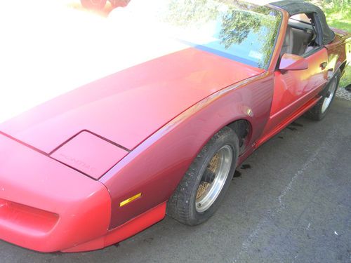 This is a 1992 pontiac trans-am convertable. I purchaced this car about 6 years ago to restore but due to life changing it has just sat and now I have no intention to fix this car anymore,so with that being said here it goes. The car has 85,000 original miles!! that is its plus as you can see the car is a serious project or a great parts car. I finaly had to move this car and was amazed it even started let alone ran strong and moved on its own power but as anyone who know tpi cars injectors do not like to sit and fire on old fuel so who knows how long she'll run strong. When I purchaced the car it was solid and still apears to be. The previous owner was involved in an acident as you can see from the images and he had purchaced a parts car and started replacing panels but it does require somemore work. The interior is rough,seats ripped,carpet stained but other wise decent once cleaned. The convertable top is in poor shape as it was when purchaced but complete. Overall this is a solid 1992 trans-am convertable with 85,000 miles that is on the rare side. I am only looking to cut my losses now and would hate to part it out but I may if I can not sell thanks for looking.