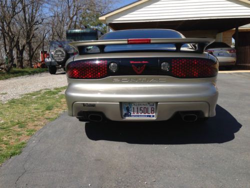 This vehicle has been babied since new.  It has been properly serviced and driven by a very senior driver that took great care to ensure the vehicle was not damaged or abused.  It has been in SW Oklahoma since new and kept out of sun and weather so it looks like a new vehicle, inside and out.  This model is the 75th Anniversary Edition 2001 Pontiac TransAm and comes with the special  Anniversary package that includes 6 way driver power seat, security package, glass locking hatch roof, 16" high performance tires that have been replaced, 16" chrome aluminum wheels, 3.23 axle and traction control.  Also the car has the premium sound system with CD player, power windows and locks, cruise, rear window defogger, steering wheel controls, carbon shocks, SLA suspension, dual exhaust, 4-wheel anti-lock brakes, daytime running lights and rear wheel limited slip torsen differential.