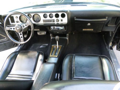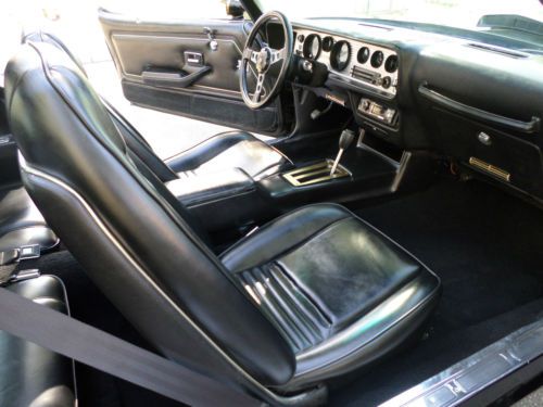 PHS Documented included to buyer showing rare WS7 option! The Trans AM has a Clear “California Title” in my name and Registration is current! Has Original Blue and Yellow color License Plate!! There is No Rust located on the floor boards, wheel wells or trunk floor areas! Car is Rust Free!!! This is a nice and rare factory equipped “WS7” performance handling package. Only a certain number of Trans Am were produced with this suspension which is the same as the WS6 suspension except it does not have the rear disc brake brakes and was factory built with rear drum brakes. It does have the front disc brakes and performance like the WS6 suspension! I do have the PHS (Pontiac Historical Society) Documents listing this rare WS7 Performance Suspension and will be included to the buyer. The Trans Am has the original 403 CID Engine. The VIN Number stamped on the engine matches the VIN number on the dash!!!! (see photos of VIN numbers stamped on engine block). The engine runs nice and smooth with good power!! The engine has not been altered and is very original! I don’t know if it has the original miles stated on the odometer which reads 38,614. The Trans AM has all its smog required emissions and will easily pass the California Smog Test!!! (passed the smog test on March 2014 with no issues! I can supply a copy of the smog certificate if needed!!). The transmission is a Turbo Hydromatic 350 and possibly is the original transmission but I could not locate the VIN Number, so I will not say it’s matching numbers. The transmission shifts smoothly and has no problems! The Car was built in Van Nuys, California and has no rust! The front suspension has been rebuilt with new upper and lower control arm ball joints and bushings. Front sway bar link bushings were also replaced. Has new Rear leaf springs rubber pads installed!! New Front brake calipers and brakes! Rear brakes have been also replaced and are in good condition. New gas tank!! Rubber fuel lines have also been replaced! New Duralast Battery! New weather stripping installed! (doors close a bit hard due to new weather stripping and door hinges will also need to be slightly adjusted/replaced). The car has a very nice and Shiny “Star Light” Black Paint job with nice SE (special edition) Decals!!!!! The Trans AM was restored and painted approx. 3 years ago. The body is straight and free from dents and rust. There are no major dings on the Trans Am other than the normal road debris scratches. There is No Rust located on the floor boards, wheel wells or trunk floor areas! Car is Rust Free!!! Original 15X8 Inch wheels which have been polished!! All four wheels look like new!! All four Center Wheel Caps are in good condition!! Front tires are Goodyear Radial 245-60-15 and the rear tires are BFGoodrich 275-60-15. Car was stored for a while and tires might need to be replaced. Original Steering Wheel with functional horn!! Original front and rear seat frames. Seats have been reupholstered and are in like new condition! New black Headliner with no tears! T-Tops are in very good condition with no cracks! Clean door panels!! Has New Black carpet!! Nice clean Center Console and Shifter!! Original Dash Board in good condition but does have one crack going doing the top center of it (see picture). Original chrome trimming/moldings! Has all Emblems intact!! All Original and very clean Gauges with functional tachometer!! Factory Electric Clock! Original Factory Air Conditioning! (was working but needs new air compressor to be installed all A/C lines are attached). Original manual windows!! Factory Electric Rear Defogger!! All lights are functional!! Wipers are functional! Has Factory Tilt Steering Colum!! New starter! Original front power wheel Disc Brakes!! Factory power steering! Factory equipped F41 Rear Stabilizer Bar!! Has New upgraded “Kenwood” AM/FM CD Player Stereo with blue tooth, satellite option etc. Also has a new “Kenwood” 250 Watt amplified installed inside the trunk. Brand new 6x9” “Rockford fosgate” speakers installed in the rear deck panel and also new approx. 5 inch “Rockford Fosgate speakers installed and nicely hidden behind both right and left door panels. Sound system sounds very nice!!! Sound dampening/thermal insulation has been installed behind and under rear seats!! Original Rear Differential with Factory Equipped 241 gear ratio and Factory Posi traction Axle!! Has dual Exhaust system with new catalytic converter. Engine has a nice throaty aggressive sound! This Trans Am runs very nice and smooth!! Suspension feels tight and drives very smooth on the freeway!! Can be driven daily if desired! Car gets a lot of compliments. Odometer shows 38,614 miles! Unknown if it’s the original miles. Serious bidders only! Seller has the right to cancel bids from bidders with zero or negative feedback. Please email me with any other questions if needed, thanks. A non-refundable deposit of $500.00 (USD) is required from winning bidder within 48 hours after bidding/auction has ended. The remainder of balance is due within 7 days of auction ending. Vehicle will not be released until full payment has been received and cleared from my bank. Vehicle is being sold “AS IS” with “No Warranty.” Buyer is responsible for Shipment/Transportation of Vehicle. |