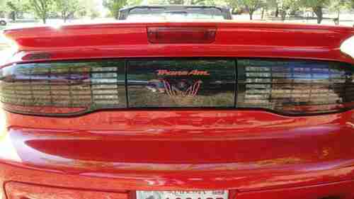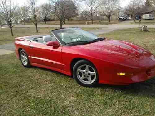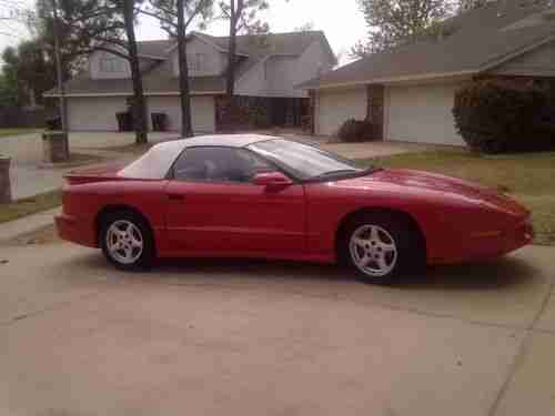 Nice clean 1995 Trans Am. Red with white top and white leather. Alloy wheels w/ new tires. 5.7 (350 cid) Aluminum head LT1(300hp) engine w/4L60E transmission & 3:42 posi rear axel. Car is clean,fun & reliable. Total blast to drive. This Trans Am has always owned and driven by a woman with 64k exceptionally low,pampered and unmolested miles. Rare color combo. Will not see many like this. Trans am is stored inside and only driven on warm sunny days. Car is exceptionally clean for an 18 year old vehicle. Vehicle is priced fairly,has a clean title,and is ready to go. Fly in and drive it home.I have vehicle listed locally and it is sublect to prior sale. I reserve the right to end auction due to prior sale. Winning bidder will submit a $500.00 deposit within 48 hours of purchase with cash balance paid on pickup. Buyer handles all shipping arrangements. Accepted method of payment is cash, certified bank draft, or paypal. I am available to answer questions after 6 pm central time