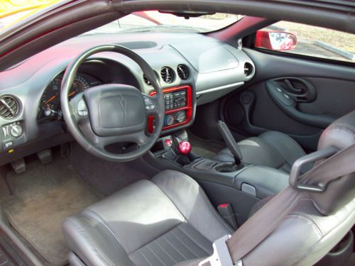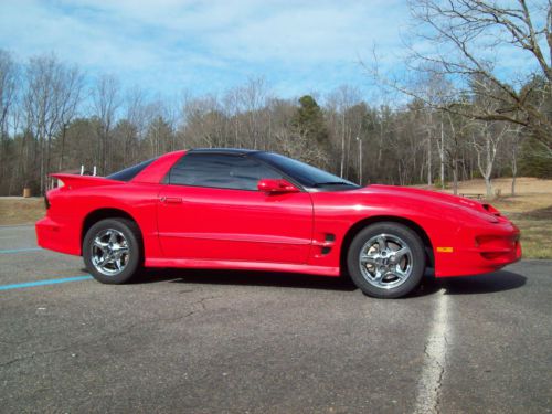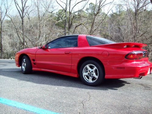 Up for auction is my very nice 1999 Pontiac Trans Am. I have owned this car since around 2001 and it has been garaged the whole time and is evident by its condition. By being a weekend or special occasion driven only car, it has only 29113 actual miles! I really hate to part with this car but I need the room in the garage and never get time to drive it. There probably will never be any more Firebirds built and you see very few on the road which is another reason that makes it so hard to let it go. The body style of this car is unmistakable and turns heads everywhere. The inside of the car is very clean and has gray leather seats with power driver side, the monsoon stereo system with CD player. The car is blast to drive an sounds awesome with the mods I have done. This Trans Am has not been abused and has never been on the the drag strip! The cam and mods make this car pull hard and fast. The idle sounds awesome and has one of the best sounds of any of the LS1 cams. I upgraded the valvetrain accordingly to handle the extra lift and duration of the cam. I have always ran Castrol full synthetic motor oil . Please see the video to hear this beast idle. The only negatives on this car is the rebuilt title due to the front clip being replaced. The car was repaired with attention to detail. Even the engine bay was clear coated as the factory does not do this. I also replaced the standard Tans Am hood with a lightweight fiberglass Ram Air hood which looks great! The driver and passenger air bags were not replaced but the covers are there and looks factory. I personally did not want to replace them and it saves weight as well. There are very few chips or scratches on this car since it has always been garaged. It will eventually need one headlight motor (about $100). The headlight motors are bad for stripping the gear inside them. It works but makes a noise as the light goes up or down. Look at the photos carefully as I have tried to photo any chips or scratches as well. I also photo'd the Goodyear tires which are also in good shape. I am starting the auction with a low bid and my reserve is very reasonable as I am taking in account the low miles and great condition of this car but also the previously repaired damage. Please message me with any questions you may have or if you would like any additional pictures. Here is a list of the mods:
