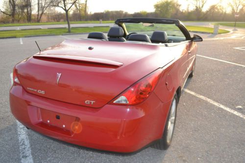 *****2006 PONTIAC G6 GT CONVERTIBLE LOADED 1 OWNER***** You are viewing a very Clean Pontiac G6 GT Convertible , Powered by 3.5L 214Cu. In. V6 Gas OHV Naturally Aspirated Engine & 4-Speed Shift-able Automatic Transmission---Traction Control----MacPherson Strut Front Suspension-----Four- Wheel Independent Suspension---Multi-Link Rear Suspension---Beautiful Crimson Red Exterior combined with Ebony leather Interior----- Key-less Entry with ----Power Locks-----Power Windows----Power Heated Driver Seat with manual lumber support-Heated Passenger Seat---Power Side Mirrors---- AM/FM in-dash CD Stereo with Monsoon Premium Brand Speakers ---- 1 Sub-woofer and 8 Speakers-----Speed Sensitive Volume Control----- Power Steering----Tilt and Telescopic Steering Wheel and Leather Wrapped Steering Wheel with Cruise Control and Audio Control----Remote Trunk Release---- Power Retractable Hard Top------- 18" Painted Alloy Wheels P225/50R All Weather Goodyear Tires with great tread left ---4 Wheel ABS---Daytime Running Lights---Front Fog Lights----Adjustable Brake and Gas Pedals-- NOTE:This G6 got 104k but Runs great with no issues no lights, engine trans runs perfect , tires got great tread left on them--every thing function normally in this car power hard top works perfect---- all electronics functions as it suppose to----- SO BID WITH CONFIDENCE . It carries a Michigan Rebuilt title due to a minor accident, were we changed and painted The left Fender Front Bumper Cover and Hood, for perfect job and all work was done professionally . Note: Please do not place a bid on these vehicles and ruin our auctions and a fair chance for other bidders unless you have been PRE-APPROVED by your bank/credit union for financing on a REBUILT title...This is a NO TOLERANCE policy and you will get reported to Ebay for non payment!!! FREE OF CHARGE 3 MONTH OR 90 DAYS POWER TRAIN WARRANTY FREE OF CHARGE AUTO CHECK HISTORY REPORT FREE PICKUP FROM METRO DETROIT AIRPORT NATIONWIDE SHIPPING (DOOR TO DOOR) AT A DEALER DISCOUNTED RATE, IF YOU WOULD LIKE A QUOTE PLEASE CONTACT US WITH YOUR ZIP CODE. THIS IS A NO-RESERVE AUCTION! THE HIGHEST BIDDER WILL TAKE THIS BEAUTIFUL G6 CONVERTIBLE HOME!! PLEASE DON'T HESITATE TO CONTACT SHAWN @ 313-903-3032 FOR ANY QUESTIONS OR CONCERNS. BID WITH CONFIDENCE WE STAND BEHIND OUR CARS
