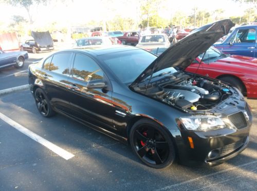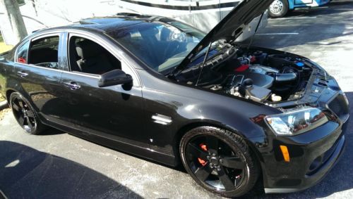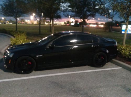 2008 Pontiac G8 GT, 6.0L V8, 63k miles, 361HP in stock form, very nice condition. Built in Australia and based on the Holden Commodore. Has all options, sport, premium & sunroof. Car is Panther Black Metallic ( PBM) & has black leather interior with red leather inserts. 6spd automatic, with sport & manual mode. Rotofab air intake, SLP inspired exhaust. Wheels are factory 19" but have been powder coated liquid black metallic. All chrome trim has been blacked out with plasti-dip, if it's not your taste it peels off in minutes. Newer tires (less than 1k miles). Engine cover, fuse box cover & air intake have been hydro dipped carbon fiber look ($500). Cover King custom car cover ($250), Tinted windows, Ez lip to protect front end, rear window spoiler. Clean car fax. Good condition, especially for year. I purchased the car a little over 3 years ago as a certified used from GM. It was a daily driver for the 1st year, gets about 25mpg+ on the hwy if you behave. The last 2+ years it has been in a garage and used for weekends & car shows. It won a trophy at the last Pontiac show in Orlando as the sponsors choice. I love this car! The only reason for selling is for a down payment on a house. Have title in hand. You aren't just buying a rare car, you would be joining a great family of G8 owners, especially in Florida!! They are very close and always willing to offer help & advice with these unique cars. Total production of the GT in 2008 was was a little over 6k, only 1700 were painted Panther Black Metallic. This model was only made in 08 and 09, before Pontiac was shut down. If you are not familiar with these, do your research. Contact with any questions