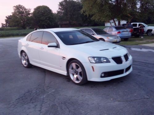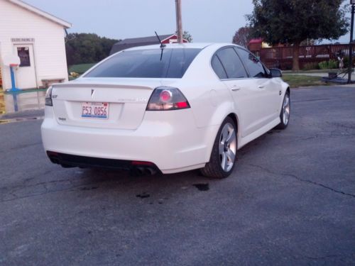 I'm selling my pride and joy but no longer see the use in keeping it. It's a white 2009 Pontiac G8 GT with black leather interior and 44,xxx miles. The car is immaculate and has no problems with it once so ever. It has 19 in rims, 6 disc CD changer, and premium sound system. You won't be disappointed with this car because with the 6.0 it isn't your average family sedan yet it still gets 24 MPG. The car is similar to a GTO or Chevy Corvette. Yet looks like a BMW. Thank you!