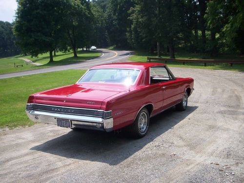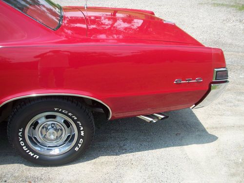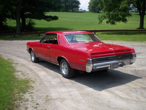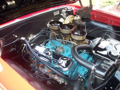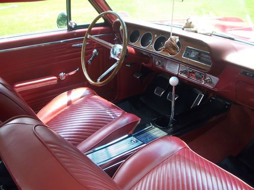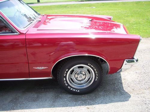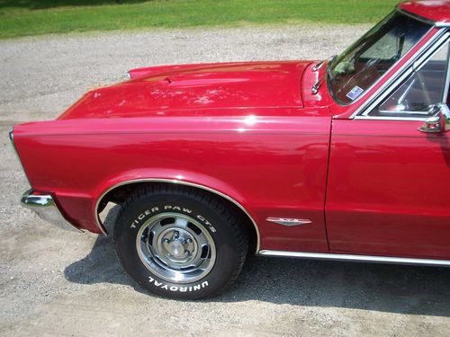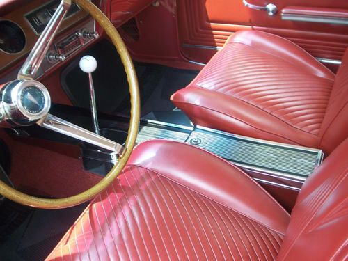 speedometer shows 30,708 probably plus 100,000 for this age. bought car in 1999 had a 68 400 block 65 tripower and found out during restoration a chevy 4 speed. it has an orangish red paint on it so I had to repainted in 2005 with base/clear Montero red paint. body shop found one little rust spot on it caused by a valve lifter that fell into the crevis between trunk and d/s quarter panel. it was replaced with a metal patch. I wanted to restore the car according to the phs documentation I have. in 2010 the front of car was diassembled down to the front frame rails showing. purchased a 65 ws-389 block dated may 1965 which came with the armaloy crank. I purchased some very nice 77 heads dated dec 64. the engine and the heads were rebuilt and everything else was replaced as new. I purchased a 65-66 m-20 4 speed Muncie and had it rebuilt to the tune of 1200 dollars. the frame rails,firewall,ect was all repainted with base/clear coat that met factory specs. the front steering was completely rebuilt and painted,new p/s and p/b were added to meet the phs docs. all new brake drums,shoes and ss brake lines. even the heater core was replaced. I rewired the car with new harnesses on the front lighting,engine and dash. with everything off the fenders,wheelliners,doors and core support were sandblasted befor repainting. the interior of the car is red which matches the id plate on the firewall. the car was built in fremont ca in august of 65 and first sold In the state of Washington. i have lost interest in the car to to age and other hobbies i now have. feel free to e-mail me with any questions you have.