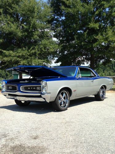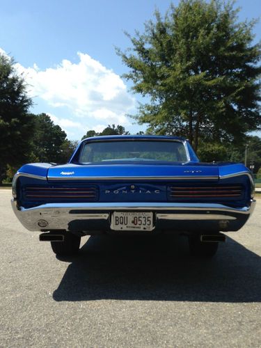 1966 Pontiac GTO, this was a one family owned car before I bought it. It was purchased by a doctor in Savannah, GA in April 1966 and has been a GA car all of its life. I purchased the car from the original owners grandson. I have included a photo from when we brought it home after the many decades it spent in a garage. Also, since the trunk is upholstered, I included a photo of the underside of the trunk floor with the gas tank removed so you can see there is nothing hiding, the gas tank is also new. The car was stripped to bare metal, the Cordova top, wheel well moldings and rocker moldings were deleted and the holes welded closed. The car is painted a 2 tone of Hot Hues Jazzy Blue and Acura Silver with opposing stripes. The 2 tone and stripes carry through the door openings, front and rear. The car was not removed from the frame, but was disassembled for paint. You can drive it home or I will work with your shipper. I will need a $1000.00 non-refundable deposit within 24 hours of the auctions end. Balance of payment is cash at pickup or wire transfer prior to shipping. Below is a list of what has been done to the car and the photos speak for themselves. Clear title in hand. If you have any questions not covered here, please ask. If you are new to eBay, please contact me before bidding. I know everyone is new at some point, I would just like to speak with you first. Thank you, Bob.