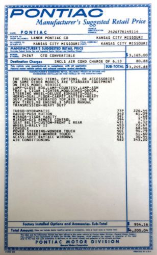 1967 pontaic gto hardtop(US $47,500.00)