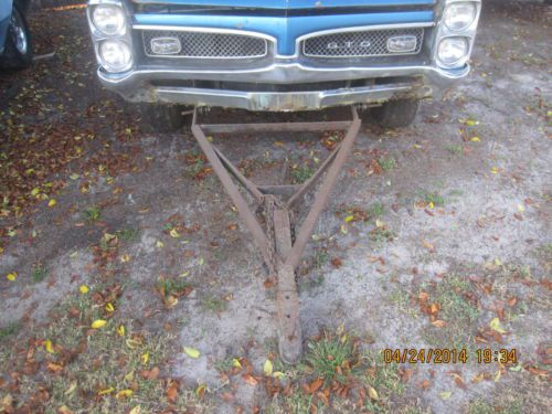 1967 Pontiac GTO 2dr. H/T Street/Strip Drag Car. This car was basically a Street/Strip Drag Car its whole life. According to the past owner that had it for 40 years most of the miles on the odometer are from the car being flat towed to and from the track. The car was raced in New York & Ohio in the late 1960's and 1970's up until the middle 1980's. That is when the motor was blown and the car has sat ever since. The car was originally Atoll Blue with White bucket seat interior and no vinyl top. It was a No Power Steering, No Power Brakes straight line type of car. It has a full factory console in it, bucket seats and lots of vintage speed stuff including: Horstman Aluminum Cool Can, Hurst Short Shifter with Hurst Line Lock button, Sun fuel pressure gauge, SW Oil, Amp & Temp gauges, plus a Vintage Tach. This car has had one re-paint in the 80's in the same Atoll Blue. The motor in the car is believed to be the original motor (code WT) but has a piece of the cam missing so it is estimated that the motor has serious internal damage to it. The rest of the drive line was all working when the motor was blown in 1986 but it all has been sitting since then so I do not know the condition of any of it. The rearend spins freely. The code on the Muncie trans is: P0D21A, so I assume it is an M20. I have the drive shaft. I have a few other parts of the engine ie: starter, alternator, brackets, pulleys, cast iron intake, headers. I do not have the heads or the carb for this car. This car also has a driveshaft loop under it. The body on this car does have some rust in it. The trunk floor is completely gone, the rear window area is weak and has rust in it. The lower part of the body has rust in it. Also, the front lower windsheild has rust. The floors have a few holes in them that have been patched but will probably need to be replaced eventually. The hood has rust in the front lip. If you live in the Central Florida area and are interested in this car I would suggest that you come and look at the car for yourself. It is going to need a lot of work to get it back on the road (or strip) but it is fixable. This car would be really cool to restore it to the way it was raced in the late 60's and 70's. Most of the vintage speed equiptment is still with the car and it would be easy to restore back to that configuration. I have a lot of other pictures of this car on Photobucket. If anyone wants to see those pictures I can email them the link through Ebay or by phone. I'm sure I am leaving some of the many details about this car out. Look at the pictures and if you have any additional questions LMK. You can talk to me via email or at 8 one 3 - seven three 2 - six zero six 8. Thanks, Curtis