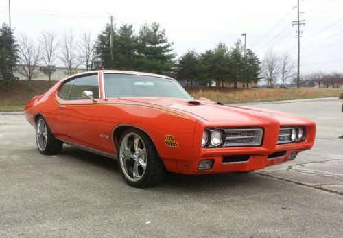 1969 GTO . This is a real 242 GTO with its matching number engine and trans. We have added the stripes,wing,hood tach, ram air system, ram air exhaust and paint to turn this GTO into an awesome JUDGE street car without the $80,000 price tag. But I guarantee you will have just as much fun with this car and turn as many heads. This was a solid car to start this project with and turned out great. Buyer is responsible for the shipping this car. Fly in drive it home! New: Rebuilt 400 big block Turbo 400 transmission 3.23 posi track rear Ram Air system AMD Ram Air Hood Hood tach Ram Air Exhaust manifolds with 2 1/2 pipes and flowmaster mufflers Paint Judge Stripes and Callouts Judge wing Rear Bumper Door Panels Headliner and package tray Carpet and door sill plates\ Headlights,Lenses, and taillight assemblies New tubular upper and lower control arms with new balljoints 2 inch drop spindles with new vented disk brakes and calipers 1 inch drop front lowering springs Rebuilt rear suspension with poly bushings Rear bumper AMD front fenders 18x8 front wheels and tires 20x10 rear wheels and tires Master cylinder Pertronix ignition Fuel sending unit The whole underside has been rhino lined to protect the rust free floors( I have pictures of the floors previous to undercoating) Refurbished some of the stainless bought some new stainless. We put a dash cap on the original dash which wasn't in terrible shape but this looks better and was an easy install for a driver All new rubber seals and window fuzzies New front windshield. The rest of the glass was usable as is. New speakers and radio As you have read here we have refurbished or replace almost everything on this car to make it a fun and reliable show car driver. Dream it, Build it, Drive it.