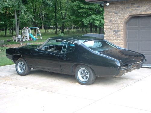 You are bidding on a VERY clean 1969 Pontiac GTO. Originally from Texas. True 10/10 (Starlight black) car. Hidden headlight car. No motor or trans but do have a 1972 Pontiac 350 4bbl and a rebuilt 1977 Turbo 400 trans for $600 extra. Car has been in storage for over 20 years. Have approx. 90% of parts to put back together. The car must have had a sunroof installed in it at one time. There is a crack in the paint on the roof section (see picture). I have a complete roof that I took off another car that will go with the car (if wanted). Car also has a fiberglass front lower valance. Car would be an perfect candidate for a rusted out GTO that has a motor and transmission. Will ad more pictures during the week. I can be reached at 440-465-5868-Chris. Thanks You for looking. Any Questions Please Ask. GOOD LUCK BIDDING!!!!!!!!!!!!!!!!!!!!!!!!!!!!!!!