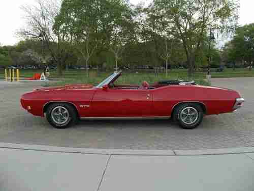 1970 Pontiac GranTurismoOmolgato "GTO" 4-speed Convertible 1970 was the pinnacle of the muscle car era! This has got to be one of the most beautiful color combinations on a muscle car ever! This is your chance to purchase one of the most highly desirable and sought after muscle cars on the planet! This GTO truly is the essence of the Widetrack Pontiac experience!! It originally was bought new according to the dealer invoice from Alabama. Apparently it had been sitting in the AutoWorks Classic Car Museum from 1995 until I made the purchase in Hollywood, Florida in 2010. The title is clean and clear in the previous owners name from Tennessee. I was told that the mileage is correct at a mere 51,000 original miles. This classic old goat has always spent its life down south, and was obviously well taken care of. The original paint was simply faded, so all the panels were removed, and meticulously painted off the car before being reinstalled. This is an original Code 75 Cardinal Red GTO with a factory 4-speed, and matching red interior verified by to the Pontiac Historical Society. It was painted with 3 coats of basecoat followed by 3 coats of one of the most expensive clear coats available to bring out the beautiful luster as seen in the pictures. All the body panels are original to the car, as well as the original floors, trunk, and frame which are all in very nice solid condition. There is one very minor patch on the passenger floor about 4"x7" in size, and that repair was done correctly to last. This paint work is as close to show quality as they come, and the body is laser straight. A fresh brand new white convertible top was recently installed with a glass back window, all new padding, and a brand new well liner. The interior has brand new exact match factory seat covers, all new side panels, brand new carpeting, and new door sills. I have to say that it is so nice to step into a 43 year old car where virtually everything around you is brand spanking new! All the seat belts are in place and fully functional. All of the rubber gaskets were replaced at the time of paint including the door gaskets, window seals, and trunk gasket. The doors open and close like when this car was brand new, and they have dual sport mirrors with the drivers side being remote controlled. The speedometer, odometer, and in-dash tachometer all work as they should. There are still a full set of four T-3 headlights and bright lights in the very nice original endure front nose. The correct 1970 tail light lenses are brand new, so they really light up nicely. The engine compartment was detailed to look like this car came straight from the factory. The original dual snorkel air cleaner has a new chrome lid to really brighten up this Big Block! The dual exhaust is in good condition with new dual chrome exhaust tips. This engine is powered by an AC Delco battery with new terminal ends. I tried to replace all of the original factory decals that appeared when this car rolled from the factory to the showroom for delivery back in 1970. According to the previous owner there is a distinct possibility this car has all of its original components from top to bottom other than the items I've replaced. That knowledge is considered third party information. Nevertheless, I'm sure the new owner will be very happy to show or drive this car anywhere with pride. All of the chrome is in good drivers quality condition to excellent condition. This original red on red GTO is perfect for the guy or girl who had one in high school and would like to revisit the past, or for someone who simply wants to drive around to enjoy steering their investment while their money grows. It's a wonderful car to take to your local drive-in movie theater or cruise night, It's also a great car to take to your high school re-union to remind your classmates how cool you really are. New spark plugs, a new oil filter, and a fresh oil change were done to prepare this car for sale. The alternator and power steering belts were also replaced. This super rare goat has factory air conditioning including all the components you see to make it work. The compressor spins freely, although I never put an A/C belt on, and I'm sure it is still on the R-12 system. Making the air conditioning work will be left up to the winning bidder if they so desire. It is just nice to have that option available. The original options include power steering, power brakes, in dash tachometer, power convertible top, bucket seats, and the factory 4-speed with the console. This classic GTO is steered by the deluxe sport wheel. It rides on a set of four Firestone raised white lettered P225 70R/14" steel belted radial tires. They are mounted on a set of four detailed original 14" inch Pontiac Rallye wheels with all four original black PMD center caps, and all new correct Pontiac chrome lug nuts with the black insert. The original AM radio is long gone. Currently there is an AM/FM Cassette player in that spot, but is not hooked up, so the sound system will be left to the choice of the winning bidder. There were no speaker holes cut anywhere in this new interior. I know that is very important to Pontiac enthusiasts. The very nice original trunk floor was coated with factory AC Delco black and aqua spatter spray, and then clear coated to seal the spatter spray. A new trunk floor mat was added under the nicely restored jack and crow bar. A full size Rallye wheel with a matching Firestone raised white lettered spare tire comes inside the trunk just in case there is a mishap on the road. With a quick tire change you can be back on your way looking complete in minutes. Everywhere this goat is driven people are attracted to it like a magnet. You have to be prepared to be the spectacle of the neighborhood, because everyone will know who's coming. These cars are becoming harder and harder to come across. The southern climate always kept these cars in much better condition than your average 43 year old car. A grea