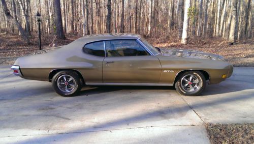1970 Pontiac GTO, California Survivor, numbers matching. Original 400 with 350 horse power. Original owners manual and California Pink Slip included. Factory 10 bolt rear end. Car has factory air, power steering, power brakes, automatic, am radio. I put on a period correct Rochester carb. The factory original carb is in a box in the trunk, which is included in the sale to the future owner. Engine bay is very well maintained and looks great. Car drives well and has plenty of power. Tires are full of tread and wheels are in beautiful condition. The Enduro bumper is in excellent condition. Interior is fresh, clean, no tears, rips. Front and back seats have all original factory seat belts in car. Front seats have two factory belt buckles, one for the shoulder strap and one for the lap belt. Headliner is in very good condition with no rips or tears. Trunk is in excellent shape with no rust issues and includes the factory bumper jack and the original small tire which has never been used. Inside of the trunk looks great! Interior and exterior are in very good condition for a 44 year old car. The car has factory glass throughout, original T3 headlights, factory paint still in door jams, trunk and inside engine bay. Somewhere along the way the master cylinder was replaced. Undercarriage is solid and in good condition. Car had one light re-spray years prior to me purchasing it. This is as rust free as you will find. When I purchased the car in 08, I was told that the car has some lead bleeding through the right and left seams where the quarter panels join the roof. It can be seen. I will include a picture. It has NOT gotten worse since 2008. Also, this car has the original metal dealer drive out tag. Roc Cutri was the GMC dealer where the car was purchased in 1970. Roc Cutri GMC has long since closed, but you can still see their dealership history on the internet. The downside to this car is the dash. California heat split the top left in two places and one place almost in the middle. I will include pictures of the cracks. I intended to send the dash out to be restored, but it never took top priority. I had to leave something left to do. What fun are they, if there's nothing left to work on? That's my opinion. I keep it in a dehumidified garage. The collector before me also kept this car in a dehumidified garage. It is one of a few original survivors. Some like a restored car, but this car hasn't been restored. This car is like it came off the lot. You can restore cars as many times as you want, but they're only original once. This car is for the person that still wants an original and they want to do a few minor things for a hobby, while enjoying a beautiful, stock 70 California, GTO. I have the original California Pink slip for this car which will be included in the sale. Also, this is a rare 1970 California emission equipped car with the original California emissions canister. Based on one Pontiac guru, this canister is a rare piece and not reproduced. He said the first thing people did when they bought a California GTO with the canister was to trash it. Now they're extremely expensive and hard to find for a 1970 California GTO, which he said makes for a more rare GTO. Hagerty magazine did an article regarding California muscle cars and discussed the cost and rarity of these 1970 canisters. The Pontiac legend, Jim Wangers took a short drive in my car at the 2008 Year One Experience. After driving and checking out this GTO, Mr. Wangers wrote the following on the car's radiator cover. "Hey Bud... Hang on to this beautiful 70, it's a "Real Survivor"! signed, Jim Wangers08. Mr. Wangers also pointed out factory chalk marks on the fire wall. If you look you can still see the mark. I will include pictures of what Mr. Wangers wrote and a picture of him sitting in the driver's seat. I'm going to try to post a video on YouTube so people can hear and see the car running. It runs great and cranks perfect every time. I changed the oil with Mobil 1 and added a bottle of Z-Max to the motor. I've been long winded, but I've done my best to honestly describe my GTO. Thanks for looking and good luck bidding. Please keep in mind this is a 44 year old car and it comes with no warranties. Write or call me with any questions you have and I will respond quickly. I'll be happy to show it to any serious buyers or agents. Bud 706-983-0357 Shipping is the buyer's responsibility. $500 deposit within 48 hours. Full payment expected in 7 days after auction ends. Funds must clear before I will release the car and pink slip. I will provide the winning bidder with a bill of sale and the pink slip, which is the title in California. Thanks!