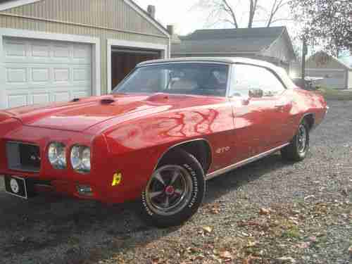 1970 Pontiac GTO convertible, 400ci/400 turbo auto., PHS documented,New Jersey car. Cardinal Red, White int.& power top that goes up and down nicely, power disc brakes, 3.55 limited slip rear, hood tach, Am radio,