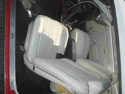 The white interior is in very good condition. As is the white top. All the gauges work as they should. The suspension and steering are tight. Brakes responsive. The exhaust note not too loud to cruise in but loud enough to let yourself be heard. All the lights work, even the trunk lamp!