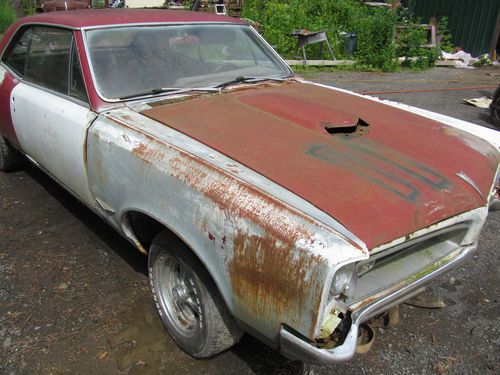 FOR SALE IS A REAL 1966 GTO SERIAL NUMBER # 242176P300865 .THIS CAR HAS NO MOTOR OR TRANSMISSION .THE CAR HAS RUST BUT A GOOD CAR FOR A RESTORATION .CAR IS SOLD AS IS WITH A BILL OF SALE . SHIPPING IS UP TO THE BUYER IF ANY QUESTION PLEASE ASK