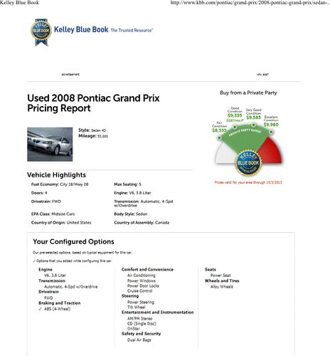 2008 Pontiac Grand Prix Base Sedan 4-door 3.8l Only 55k Miles on 2040-cars