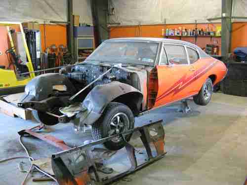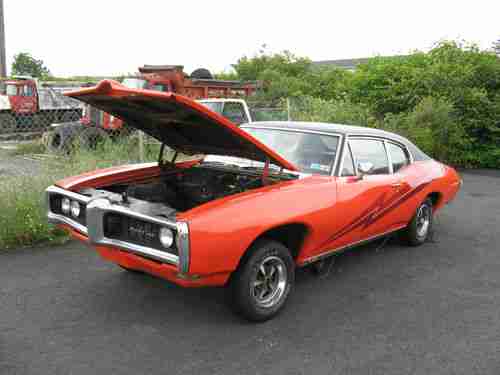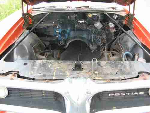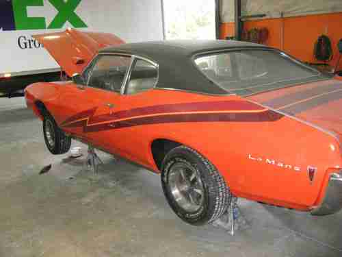 I am selling my 1968 Pontiac LeMans which had been sitting in a garage for 25 years when I started this project. It has no motor and transmission. It is huggar orange with fiberglass fenders. It has an original GTO Ram Air Judge hood (priceless), a GTO his and hers shifter and a completely redone GTO rear with new 4:10 gears in it. It has bucket seats from a Tempest, new carpet and headliner. I had recently removed the front end and had the engine compartment sprayed in anticipation of a new motor and trans before I lost my job. The body is solid and the interior is about 90% complete. This car needs someone with the know how and the resources to finish the job where I left off.