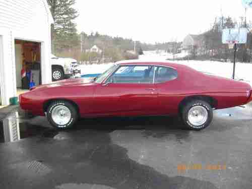 NO Reserve Auction Highest Bidder wins this great Car!!! Original Lemans with some upgrades. Whats been done. New paint 2008, new wheels and tires, new shock monroe load leveler sensamatics all around, new carpet, headliner, door sills, all rubber seals, original 350 engine (never verified), non matching turbo 400 tranny gate shifter, eddlebrock carb new in 2008, dual flowmasters with tips, car sounds mean, gets the looks at all shows. 1969 gto hood mono chrome paint, cayane red pearl. nice pioneer radio and speakers, new wiper motor, leveled exhaust manifolds to seal leaks. New door handles, locks, and mirror. New drive shaft with u-joints. New gas tank and sending unit. New door panels front and rear. Seat bealts after market. New sway bar bushings and upper a-arm bushings. Could use original front buckets and some interior dash work. Car is ready to just clean and go cruisin. Not a show car but beatiful daily driver.
