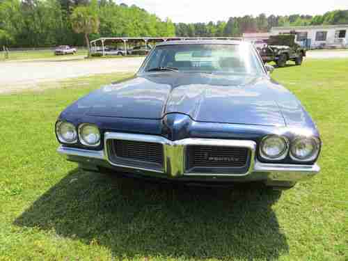 Here is a great project for a father and son or a first time project car.. lets start with the outside; the vinyl top is not glued down right; has small wrinkles. NOT RUST.. just not glued down in places. the deck lid has Pontiac under the key hole. Pontiac was removed and he bondoed the holes, need a little work. the rest of the body is good; has chips here and there. 10 foot away looks good. wheels are good. driver side rear window does not work nor does passenger side window. front two good. all glass good. driver seat is tore . radio does not work. key switch will crank the car with the help of a kill switch. to cut it off, hit the kill switch. the 400 small block and transmission and rear-end work good. this is a driver all day long. Everything is a very easy project for anyone. carpet good, dash good, seats other than driver is good, body is good; molding is good. the reserve is very low. .I will end the action with cash in hand not before. Am trying to sell locally but will give top bidder first shot before I sell it locally.