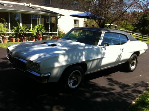 Up for sale is a 1970 Pontiac LeMans someone started to turn into a GTO Judge Clone. They added the spoiler in the back and what looks to be an original GTO Ram Air Hood. The original build sheet (which is included with the car) shows a 350 engine but the side of the car and air cleaner say 400 so I have no way to tell whether this is the original engine and transmission or not. I am not a mechanic and so I really don't know. It starts and runs (like a bat out of hell if you step on it) and the odometer has not changed from 22941 miles since I got it about 6 months ago. My friend who is a mechanic said he recommended a carb cleaning and/or rebuild and that the odometer/speedometer not working is probably a disconnected or broken cable (available on eBay for around $25). I was told the transmission is a 400 and it seems to shift fine through the gears. The car has Power Brakes, Power Steering, and was a factory AC car but the compressor has been removed. I took the car to the antique car show at the Howard County Fair and it got lots of compliments. It sounds awesome with the nearly new dual exhaust and just exudes American Muscle. The car does have some rust in the usual places like between the vinyl top trim and the body and the paint is bubbling and/or cracking in several places. I am sure this is an older restoration car that could use some touching up but I don't think it will take much to turn it into almost a show car. It's a nice driver as it is and someone could have a lot of fun with it. The trunk pan needs work where it meets the wheel well as that area has the worst see through rust. I have not had it on a lift but peeking under it, the car is not bad at all and she feels solid riding down the road. This is a 43 year old car so it is not going to be perfect and you can expect that not everything will work nor will it look flawless. Please don't be a dreamer but approach the car with an open mind of what you get into with an older car but also how much fun it would be to have a muscle car like this. They are getting harder and harder to find in running and driving condition. In fully restored condition, these cars are selling for upwards of $12K-$15K or more. In wrecked condition or needing total restoration they go for between $3 and $6K. At a $5000 Buy It Now price, you'll be hard pressed to find another one in as good of a condition and I paid more for it than I am selling it for but have no storage for the winter and don't want it left outside. The headliner needs to be replaced (around $70 on eBay) as well as the front bench seat cover (around $100 on eBay). Other than that, the interior is actually in very nice shape with no cracks in the dash and the rear seat looks like it just came off the Baltimore GM Plant assembly line. The 8 track radio has been removed but you can put whatever you want in it's place. The horn does not work. Brakes seem to work fine and the larger American Racing rims and tires on the back of the car sitting on the tall coil springs makes the car look pretty cool. She does leave a few drip spots on the driveway but nothing is pouring out of the car. It has been a heck of a lot of fun playing with it the last couple months but I have no winter storage capability and just don't want to see the weather get to it. I'd like it to go to someone who will enjoy it even more than I have and maybe wants to tackle a real easy restoration over the winter months. The LeMans includes two sets of keys, a reproduction original owner's manual, what's left of the deteriorating original build sheet, and a brand new Haynes repair manual. There is no warranty expressed or implied with this car. There are no refunds or exchanges. A $500 non-refundable deposit is required at time of auction close or when clicking "Buy it Now". I try to price my cars very reasonably. The car is registered and insured and you are welcome to call me at 301.633.8116 to schedule a time convenient for both of us to meet to test drive the car. I have worked with several shipping companies and can assist with getting a transport quote and getting it loaded onto a shipping carrier truck but all shipping costs are at the buyers expense and the car doesn't leave here until paid in full with cleared funds. Someone will really enjoy this car! Thanks and good luck bidding! |