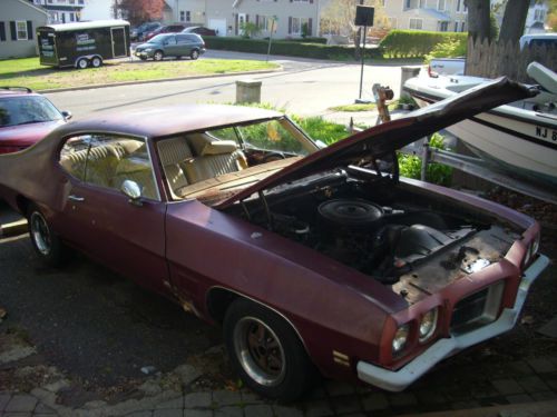 I have a 1971 lemans 2door I bought a bought about five years ago not running. It needs to be redone or drive as a beater. It has drum brakes all the way around. It has been on the road and I have been driving it. I put a lot of new parts into ths car. The whole braking system has been re3done, fuel pump and gas tank and all brake lines,water pump, exhaust system and it sounds tuned perfect while at idle but not!!!!!! I spent a few dollars on the mufflers so it sounded good. The carb needs to be rebuilt and sorry its not a four barrel but I have a four barrel manifold that goes with it as well as floor pans rear lower sheet metal ($250)around window. The car has headers and put new gaskets but some bolts that hold headers on need to be replaced. The doors shut perfect and locks are new. I recommend you come by to take a look and listen to it run. I have interior parts I took out but not all. I remember I looked up the production of this car and the number was low possible its worth more if fewer were made? Take a look the vin is in the add Give me a call for a time to come see it Bill 732 500 8803 |