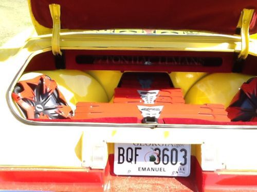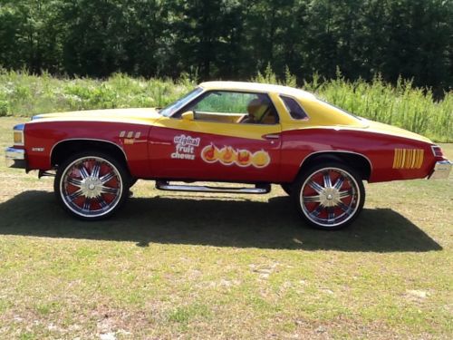 This is a beautiful 1977 Pontiac lemans I'm selling the only reason I'm selling is because I'm trying to downsize some this is a awesome car. check with your local dmv on registration because the title I have the gut I bought it from signed in the wrong place and they told me it was to old to issue a new title so they said the bill of sale that I have is just as good so that's the only thing. But I have owned it for 14yrs and I get tag and insurance ever year for it. The car has 26 inch wheel and tire 95% on them 7 tv s all in the car Lamborghini doors great kicker sound system all the way through this really is a awesome car. It has a strong 6.6L V8 engine and a 400 turbo transmission and it really will handle these wheel and tires like they and even on there and I also put some 373 gears in the rear end and the interior is awesome red and yellow and the ac and heater also works so if you have any questions feel free to contact me at 4784942171 thanks. Oh yea it also runs off 93 gasoline small cam and I also had the whole nose chromed and the front and back bumper also and put step bars on it.