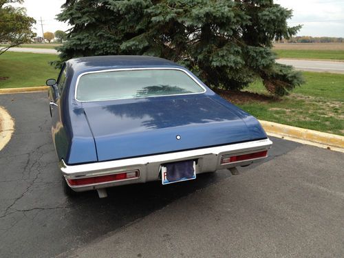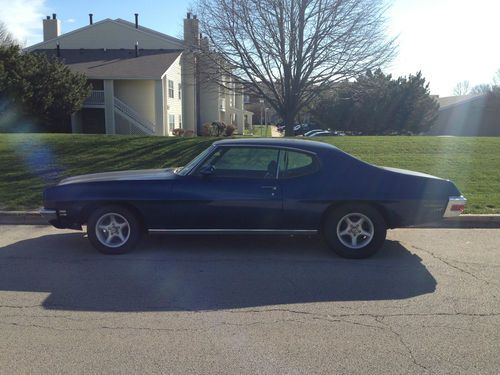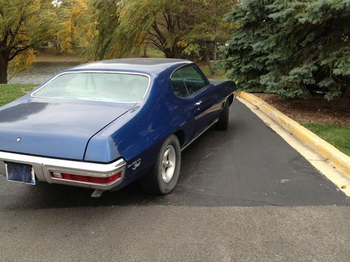 1971 Pontiac Lemans blue interior and exterior. Around 22000 on the odometer but its sure to be 122000 actual. The car will need interior work missing the headliner has dashpad cracks and the driver seat is well worn. Also needs a package tray. Missing a lot of the hvac ducting. Aftermarket grant steering wheel and grant tach. Originally a 350 car now has a XH code Pontiac 400. Runs well But has some engine noise. Turbo 350 trans shifts well. 4 wheel power drums on the car stop well. Replaced the trunk floor and the rear deck filler. New battery and ignition switch. Also have a full weather strip kit to go with the car. The rear bumper has also been replaced. The car has headers and flowmaster exhaust. The paint has a few bubbles. It will need attention eventually. Aftermarket Wheels don't have the originals. Factory a/c car but missing the compressor. I have a video of the car on start up if you want to check that out. Feel free to ask me any questions. The car is without warranty of any sort. Please feel free to come inspect the car in person its located in zip 46403. You'll be responsible for shipping. 500 deposit within 48 hours of auctions end. Balance due within five days. Thank you for your consideration.