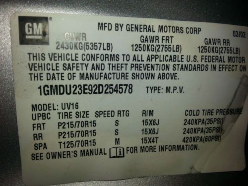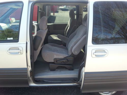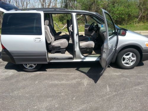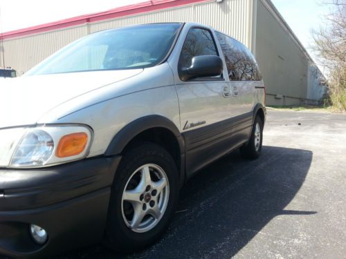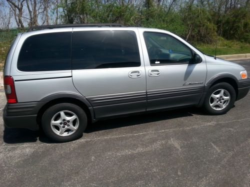 2002 Pontiac Montana Minivan up for auction. The van was gently used and well taken care of. Garage kept by previous owner. Regular maintainence performed. Engine runs quietly and smooth. Transmission shifts effortlessly. Full tune up and Signature series oil change less than a week ago. AC NEEDS RECHARGING. GAS NEEDLE FLUCTUATES. EASY FIXXES. This van was treated with allot of tender love and care. Perfect for family outings, road trips or just a day out on the town. Solid van. Reliable and trustworthy. Normal wear as to be expected in a 12 year old vehicle. Great deal. Definitely a keeper. A real gem. Opportunity is knocking. Open the door. Bid and Win!!!!!