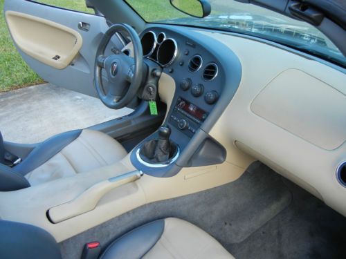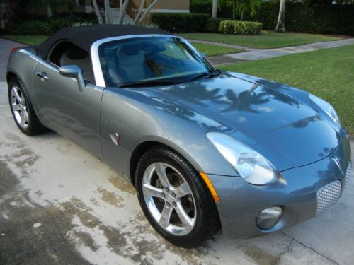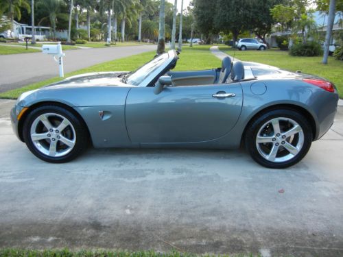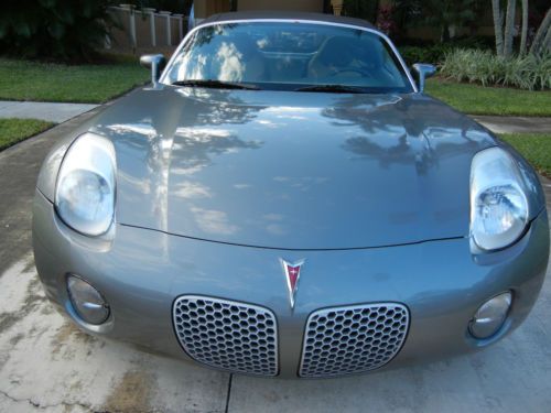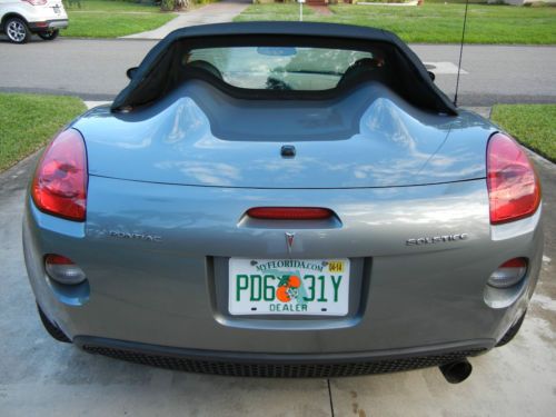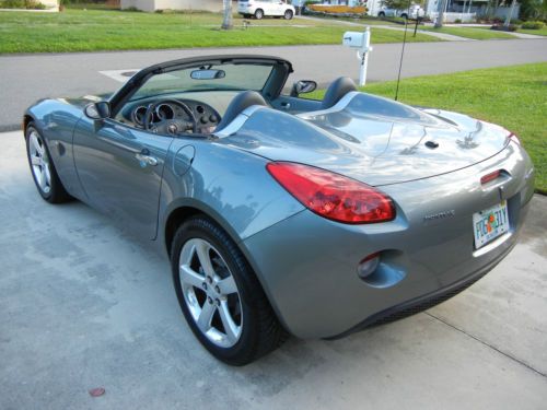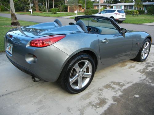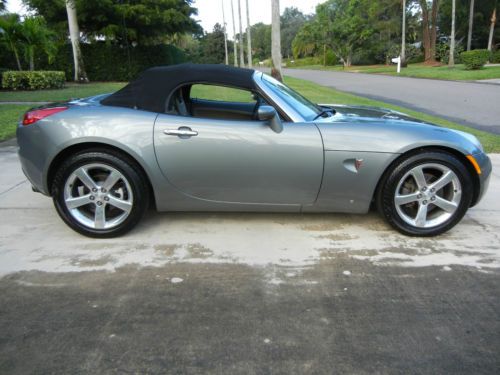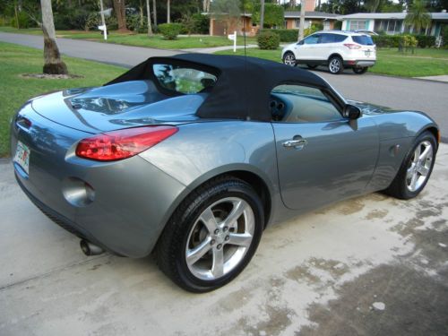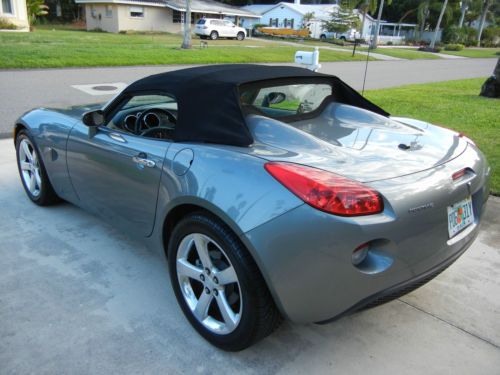 UP FOR AUCTION AT "NO RESERVE" (HIGHEST BIDDER IS THE NEW OWNER) WE HAVE AN EXCEPTIONALLY CLEAN 2006 PONTIAC SOLSTICE CONVERTIBLE..PREMIUM PACKAGE..2 TONE LEATHER SEATS..FACTORY 18"CHROME WHEELS..SPORTY 5 SPEED TRANSMISSION..RUNS AND DRIVES AS IT SHOULD..EXCEPTIONALLY NICE FLORIDA CAR..NO RUST..LOW MILES..NADA BOOK VALUE IS OVER $11,500.00.. YOU GET TO SET THE PRICE...ONLY 79,808 MILES FROM NEW..RUNS AND DRIVES AS IT SHOULD..LEATHER SEATS SHOW LITTLE WEAR..NO RIPS/TEARS/HOLES..CLOTH CONVERTIBLE TOP IS IN EXCELLENT CONDITION..GRAPHITE METALLIC PAINT IS 100% ORIGINAL..EXCEPTIONALLY NICE, EVEN FOR AN 7 YEAR OLD CAR..NO ACCIDENTS..CLEAR AUTOCHECK REPORT AND CLEAN CARFAX ..GLASS REAR WINDOW WITH DEFROSTER..FUEL/TRIP COMPUTER..TRACTION CONTROL..ALL MICHELIN TIRES ARE NEARLY NEW..NO WARNING LIGHTS ON IN THE DASH..NO REPAIRS NEEDED.