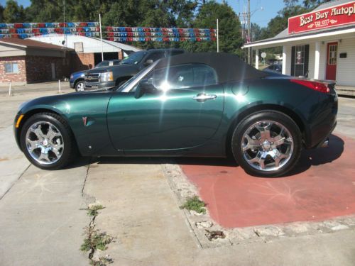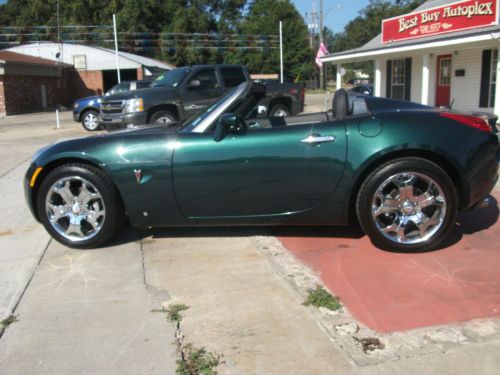 Extra clean and ready to roll! Hard to find like new Pontiac Solstice. Shimmering green exterior and stunning black leather interior. There is nothing better than having the top town on a Sunday in this car! Equipped with shinny un-scuffed chrome wheels! This one sparkles when the sun hits its metallic green paint. Please give us a call or email us with any questions or concerns. You can reach us at (985) 732-1577 or at l_pack@bellsouth.net