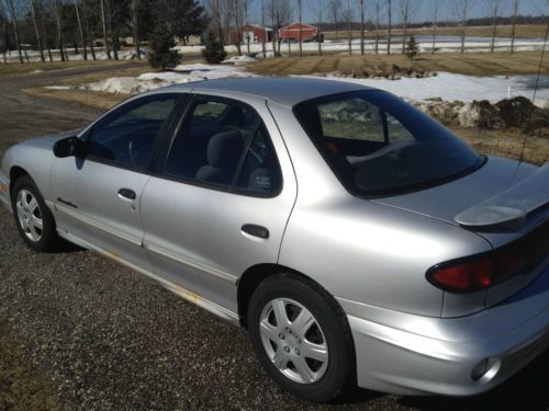Up for auction is a 2000 Pontiac Sunfire with relatively low miles for the year. This Car is in fair condition with small dents on the right corner panel and minimal surface rust. Car has 137,691 miles on it. Very well maintained (Oil changes every 3k-5k miles). The tires are in great condition. Car starts right up. Runs and drives great. This car is by no means mint, but it is a great first car or a very dependable commuter car. Only known defects are an issue with the daytime running lights. This triggers the service light to come on when car is put into gear. Dims still turn on and work fine. Also, AC does not blow cold air, never really bothered to investigate issue. Power windows work, but go up slowly. All sales are final since I am selling this car for a friend. If any question arise please feel free to message me. Local pickup or buyer is responsible for shipping. Happy Bidding!