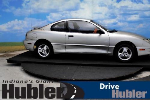 PRICE DROP FROM $5,995, FUEL EFFICIENT 34 MPG Hwy/24 MPG City!, $700 below NADA Retail! SECURITY PACKAGE, POWER PACKAGE, 1SB PREFERRED EQUIPMENT GROUP, TRANSMISSION, 4-SPEED AUTOMATIC, ELEC... 4 Star Driver Front Crash Rating. SEE MORE!======KEY FEATURES INCLUDE: Rear Spoiler, Remote Trunk Release, Bucket Seats, Front Disc/Rear Drum Brakes, Vehicle Anti-Theft System. ======OPTION PACKAGES: 1SB PREFERRED EQUIPMENT GROUP includes (SVA) Console, cupholder, (B37) Floormats, carpeted, front and rear, (AF5) Seat, easy entry, front passenger, (U1C) Sound system, ETR AM/FM stereo with CD player, (N33) Steering column, Tilt-Wheel, adjustable, (D34) Visors, vanity mirrors, driver and front passenger, (NB5) Exhaust, single outlet, chromed, Brake/transmission shift interlock, automatic transmission, (MX0) Transmission, 4-speed automatic, electronically controlled with overdrive, SECURITY PACKAGE includes content theft alarm system (AU0) Keyless entry, remote, programmable and (AU3) Door locks, power, POWER PACKAGE includes (DG7) Mirrors, outside rearview, power, Sport and (A31) Windows, power, TRANSMISSION, 4-SPEED AUTOMATIC, ELECTRONICALLY CONTROLLED WITH OVERDRIVE (With 1SB Preferred Equipment Group Includes (NW9) Traction Control, Enhanced Traction System when (JM4) Brakes, 4-wheel, anti-lock front disc/rear drum is ordered.) (With 1SC Preferred Equipment Group Includes (NW9) Traction Control, Enhanced Traction System). Sunfire with LIQUID SILVER METALLIC exterior and TRIM, GRAPHITE interior features a 4 Cylinder Engine with 140 HP at 5600 RPM*. ======EXPERTS ARE SAYING: Great Gas Mileage: 34 MPG Hwy. ======AFFORDABLE: Reduced from $5, 995. This Sunfire is priced $700 below NADA Retail. Pricing analysis performed on 6/10/2014. Horsepower calculations based on trim engine configuration. Fuel economy calculations based on original manufacturer data for trim engine configuration. Please confirm the accuracy of the included equipment by calling us prior to purchase. Did you know that Hubler Auto Center has earned the #2 dealer in Indiana for GM Certified car sales? PLUS...most of our non-GM pre-owned vehicles come with a 2 year / and up to 100,000 miles limited powertrain warranty! We've got you covered with the BEST coverage in Central Indiana - call today for details!