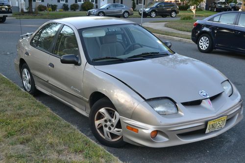I am selling my Dad's 2000 4dr Pontiac Sunfire. He is selling because it is a second car and he bought a Jeep to replace. The car has 155,362 miles. He used mobil one synthetic oil every 3000 miles. Car runs good trans shifts good. The air conditioning blows cold air. There are some dents and some scratches. The passenger fender is dented. The interior is nice but there are some stains from grand kids and some stains from him. The Cd player works. The 2 front electric windows sometimes don't work and sometimes they do. He just uses heat and air conditioning so he never bothered to fix. He recently had a problem with the brakes hanging up and is 70 years old and doesn't want to be bothered fixing them. He wants to play with his Jeep. He had a problem with key switch once so he put a start starter button incase it ever happened again. He also replaced the starter. NJ inspection is good until 8/2014. This could be a good car for someone my Dad has had this car for years and doesn't want to be bothered fixing the brakes and wants to play with his old Jeep. I encourage you to come and look at before bidding. My phone number is 732 780 6777. There is No Reserve but I am listing locally so I will remove if someone comes through. Winning bidder is responsible for picking up car and all fees associated with pickup.