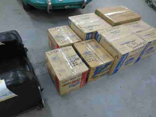 All items photographed in boxes behind car and original seats have been placed inside the car which is ready for transport.