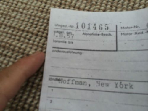This car is in exceptional condition, ready to be driven or shown. A numbers matching example, off the road since 1973, the car was brought down to bare metal by marque expert, Dink Farmer. An exceptional metal and body man, the gaps are perfect throughout the car, especially the doors. They open and close easily, and have the extremely difficult to find(and therefore expensive) 1957 only door handles, keyed to match the ignition switch, as original. The radio was rebuilt, and NOS speakers were installed and comes with the correct red tipped Hirschmann antenna installed. You're probably going to be enjoying the sound of the throaty engine, which utilizes a NOS factory sport muffler, not the radio.....but it works! Front and side glass is new and has the appropriate markings on them. The interior is a beautiful red leather, done by Auto's International. The seat recliners were rechromed and function as new. All knobs are originals, redone, and matched(color) along with the steering wheel. Everything chrome, was rechromed, by Christensen Plating. The Bosch headlights, with their 9 and 12 o'clock adjusters were redone, as was everything else, by Concours Refinishing, Victor Miles. The shine up license light, the rear glass reflectors, and the front and rear taillights are redone, and correct. The original(on the Kardex) manual sliding Golde sunroof functions as it should, with a great deal of timespent getting it to open and close correctly, which it does. All brake and suspension components were redone, along with new Koni shocks. Everything was rebuilt or is NOS. Although a bone stock engine, the car has a lot of power and starts immediately. The car is a real pleasure to drive.