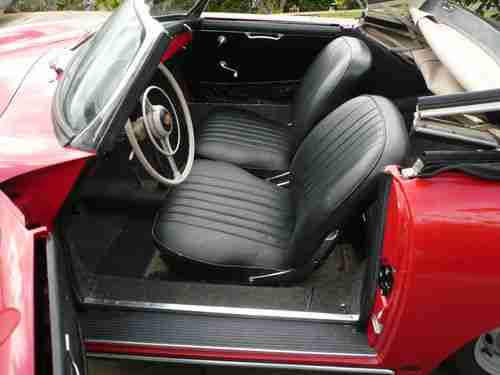 This Porsche 356a Convertible "D", came from the Hakim collection in Honolulu, HI. Believed to have been restored in the early 1990's. Since that time it had been in dry storage. I purchased this car and gave it a freshening up. The engine had gone missing while it was in storage. A period correct block was acquired and a total rebuild has been done by Bob Simpson. German 1800 pistons and cylinders, S cam, Solex p44 carbs. Original Transmission is still in the car. The whole braking system has been renewed, new master cylinder, new wheel cylinders, and hoses.