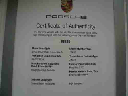 1960 porsche 356b-t5 coupe black beauty matching motor with coa