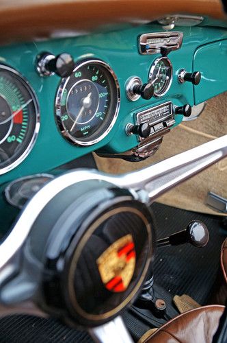 Under his stewardship the car was systematically stripped and returned to its original color – the stunning Glasurit Syrmna Green you see it dressed in today, complete with wheels of the same color. The brakes were overhauled, the engine was gone through, and the top half of the motor was rebuilt with new heads so that the car could run on unleaded gas in the United States. Despite these vital improvements, the car’s originality was respectfully maintained and the car still has its original radio, luggage rack, date-stamped wheels, six-volt electrical system, and exceedingly rare and valuable complete tool kit with Porsche-inscribed wrenches. In addition, much of the interior of the car is as it was the day it left the factory with the same steering wheel, gently worn brown leather seats, headlights, dash panel knobs, and clock. The soft top has been freshly replaced with the correct German Happich material and the carpets have been correctly redone. The car’s undercarriage and battery box are immaculate and completely free of rust and the car is an absolute joy to drive.