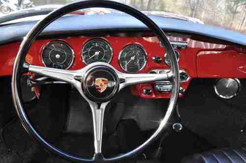 The exterior color has been re-painted to its original color. The paint work is flawless with excellent gaps along with perfect fit and finish. All new interior with German square weave carpets, leather seats, German top and boot cover. Rebuilt 1600cc (75HP) engine, transmission and four wheel disc braking system. If you have been looking for a perfectly restored late model 356 look no further.