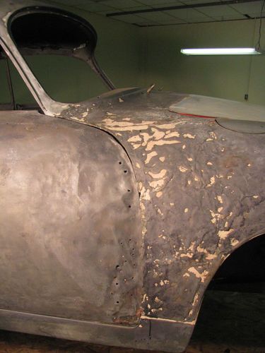 What is offered for sale is a 1964 model year Porsche 356 C restoration project. This California car was built in 1964,yet was titled as a 1965 model. The car is equipped with the original numbers matching 1600C engine and 4-speed transmission. Engine number is 713870. Tranny number is 79313. The original color of the car is believed to be Grey, with a red interior. The body is completely stripped to bare metal, and treated with a rust inhibitor.
