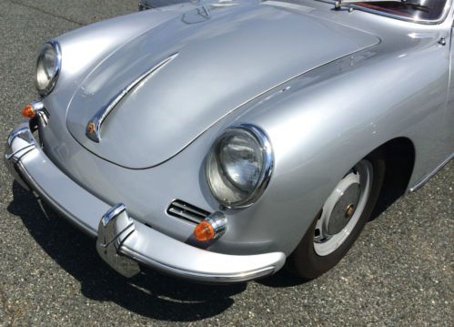 Porsche 356 C Coupe Silver with Red Interior Mileage 59253 Engine #616/15 1600 c.c. 1.6L Four Speed Manual Transmission Generator ATP 731 155 (1964) One of our customers is thinning his collection. Up for auction is his 1965 Porsche 356C. This car is in very good to excellent condition. Somewhat of an older restoration (paint and interior), showing slight age, but still has a very nice presentation. This Porsche drives great, starts right up, idles smooth, pulls effortlessly, and shifts smoothly up and down through the gears. The car feels light and nimble and 4 wheel disc brakes slow it down in a hurry. New parts include: muffler and tail pipes, front sway bar bushings, recent carburetor and tune up work, as well as recent oil service and a fairly new Optima Redtop battery. The car has 185/70 X HR 15 Vredestein Sprint Classic tires and they are like new. The underside is solid and rust free but has had some repairs done over the years. The interior is in beautiful condition with well cared for leather. The car does have some scratches and minor imperfections throughout, but the body is solid and shows no serious imperfections. Some of the chrome could use refinishing. The tach and temp gauges need attention and the heater boxes have been removed. This car is currently located near Baltimore, Maryland. The history of the car is somewhat vague, we believe it may have been in California for some time and then restored in Canada before coming to Baltimore. More photos are available, all questions are welcome and may be directed to Mark at 410-420-1202 or markraspi@aol.com. We will gladly show this car by appointment. |