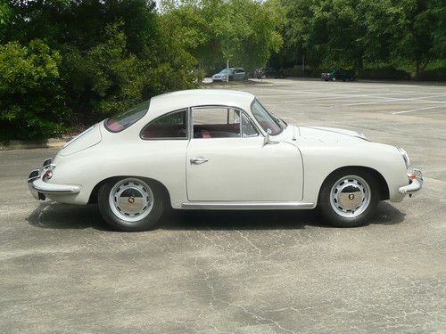 Up for sale is my 1965 Porsche SC Coupe, vin 219059. Very solid car, new floors, longitudinals, closing panels and jack spurs along with battery box repair. Floors and metal work are well done. New bumper guards and windshield and back glass rubber and headlight stone guards and deco molding for body and below doors were also added. The car is painted Dolphin grey which is an original Porsche color and has new Aztec red leather interior along with German squareweave charcoal carpets. The driver side hinge cover indicates that the car originally came painted color code #6405 which is Champagne Yellow. New door rubber seals and mats and door sill plates with clean headliner complete the interior. No evidence of prior accident damage or collision. The hood is not kinked and the hood pull and engine lid pull and the gas filler door pull all work smoothly. The paint is driver quality with some minor imperfections (please see link for over 190 photos), overall presentable. There are some slight bubbles on the bottom of the doors. Door bottoms are solid as can be seen by the pictures on the link. Doors and hood and engine lid all close well. The doors have a nice "thud" when they are closed. The car is titled as a 1965 but actual production year fell in 1964. It was produced toward the end of the 1964 production run and hence by the time it reached the U.S. it became titled as a 1965.