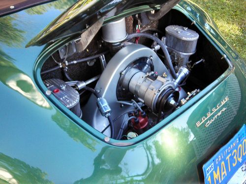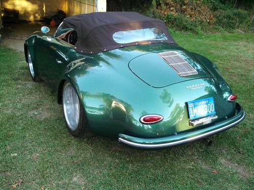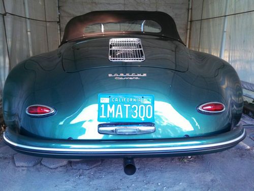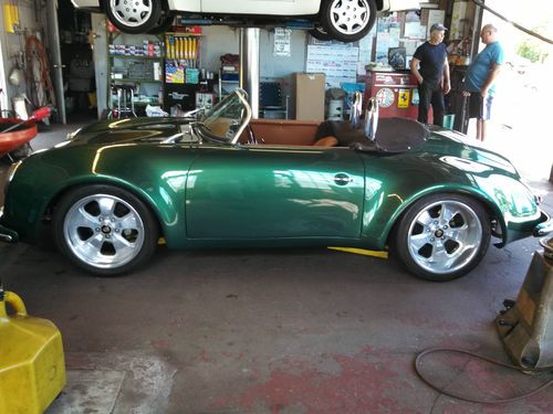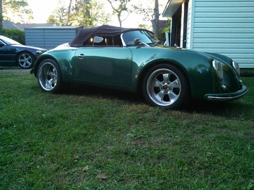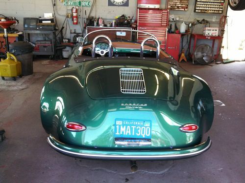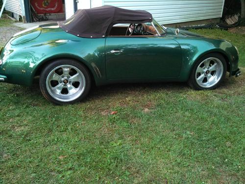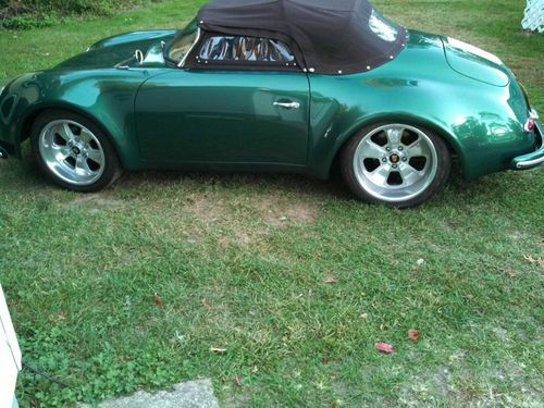 Selling a 1956 Porsche 356 Speedster wide body. This Speedster is Built on a 1972 VW Chassis like more than 90% of them are! This car was Built with the Best of the Best in mind, It was built in 2008 My Buddy had it built the way he wanted too, This was a special order it has a 2300cc 4cly engine with twin #44 weber Carbs on it making around 180/195 HP Car runs Great, hasn't been used in months could use a good cleaning ,4 SPEED 4 Wheel Disc 17" Wheels, Stero, Leather Interior, Tonneau Cover, Brown Convertible Top, Windows, Heat, Duel Chrome Roll Bar, Beautiful Green Clear Coat, with Mint Tan Leather Interior,( THE PICTURES DON'T DO THIS CAR JUSTICE) Car has a 1972 VW Califor Title Clear ready to go! Also will be posting my 64 Corvette Coupe Matching # 327 250 HP Auto Survivor!! Car Is Sold AS IS Good Luck Bidding Look at the rest now Look at the ( BEST)!! Car is for sale Locally and I will end auction at anytime!