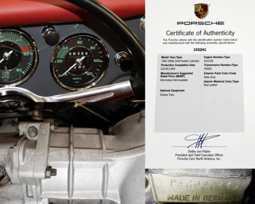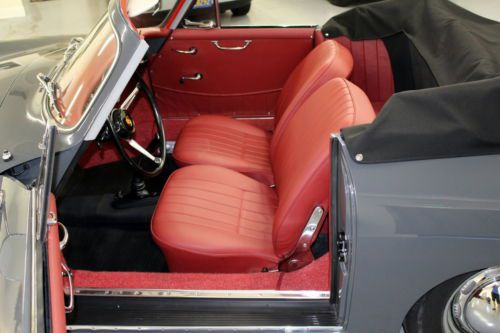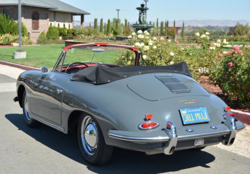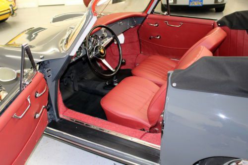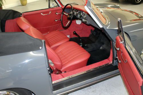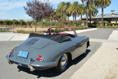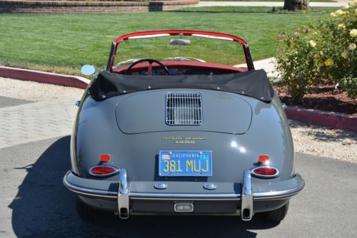 1960 Porsche 356B T5 Cabriolet, Slate Grey with Red Leather interior, fully restored. Solid garaged California car, beautiful factory color combination. Recent bare-metal restoration: dismantled (windows removed); hand-dollied, hand blocked, base-clear paint, wet-sanded and polished, reassembled with all new rubbers and seals. New leather interior, fresh rebuilt engine, new clutch, new brakes, new exhaust, new tires, new shocks, all gauges refurbished by Palo Alto Speedometer -- far too many details to list. Rare and desirable early B Cabriolet redone to our high standards. Prior to restoration this car was stored over 25 years inside a dry garage in the East San Francisco Bay Area. After a year of work at our full-restoration facility in Pleasanton, California, it is finally finished -- ready to be enjoyed. We are a licensed California dealer: California retail buyers will be responsible for tax and license fees. Overseas buyers are welcome: We work closely with a local overseas shipper in San Leandro, California, who offers competitive rates. Please complete any inspections prior to bidding. Thanks for looking! Please email any questions, and see a slideshow of 166 detailed (and downloadable) pictures by clicking on the slideshow below: